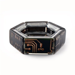 The Zen watch is the first wristwatch that does not tell time. Instead, the Zen watch is a reflection on the modern-world production of needless things and how they affect our planet. The Zen watch is a modern interpretation of a traditional status symbol. A fashion statement that conveys a Zen-like energy, the Zen watch is part of SOBRAL’s eco-friendly “Flash Gordon” collection, crafted entirely from recycled computer circuit-boards. The Zen watch brings social responsibility and awareness to an antiquated object, updating the concept of a wristwatch for the 21st century.